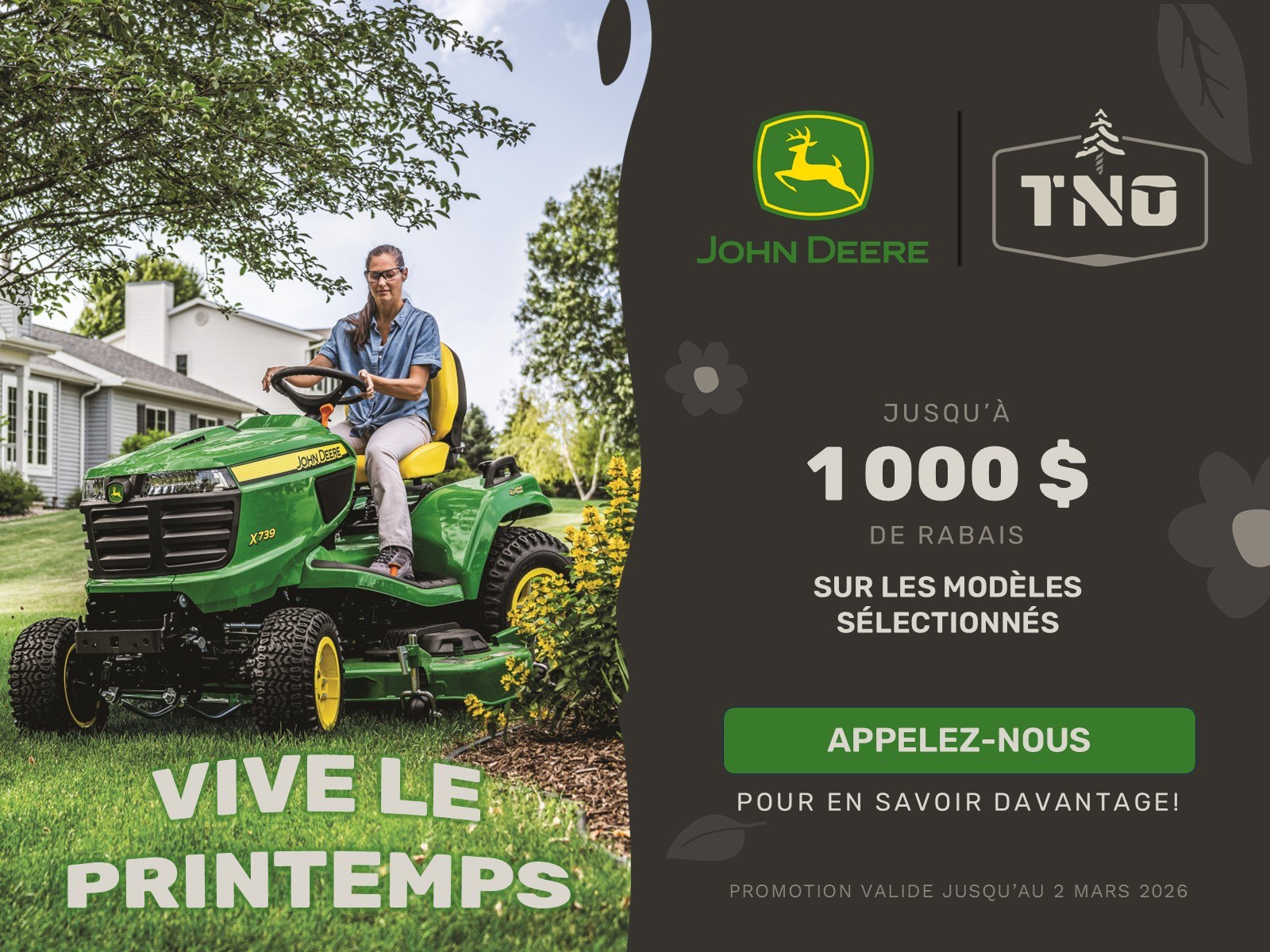 Jusqu'au 2 mars 2026 Promotion - Vive le printemps avec John Deere